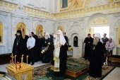 За богослужением молились: глава Среднеазиатского митрополичьего округа митрополит Ташкентский и Узбекистанский Викентий, управляющий делами Московской Патриархии митрополит Санкт-Петербургский и Ладожский Варсонофий, первый викарий Патриарха Московского и всея Руси по г. Москве митрополит Истринский Арсений, наместник Данилова монастыря архимандрит Алексий (Поликарпов), заместитель управляющего делами Московской Патриархии архимандрит Савва (Тутунов), руководитель Пресс-службы Патриарха Московского и всея Руси священник Александр Волков, сотрудники Московской Патриархии, участники заседания Комитета по премиям памяти митрополита Московского и Коломенского Макария (Булгакова).