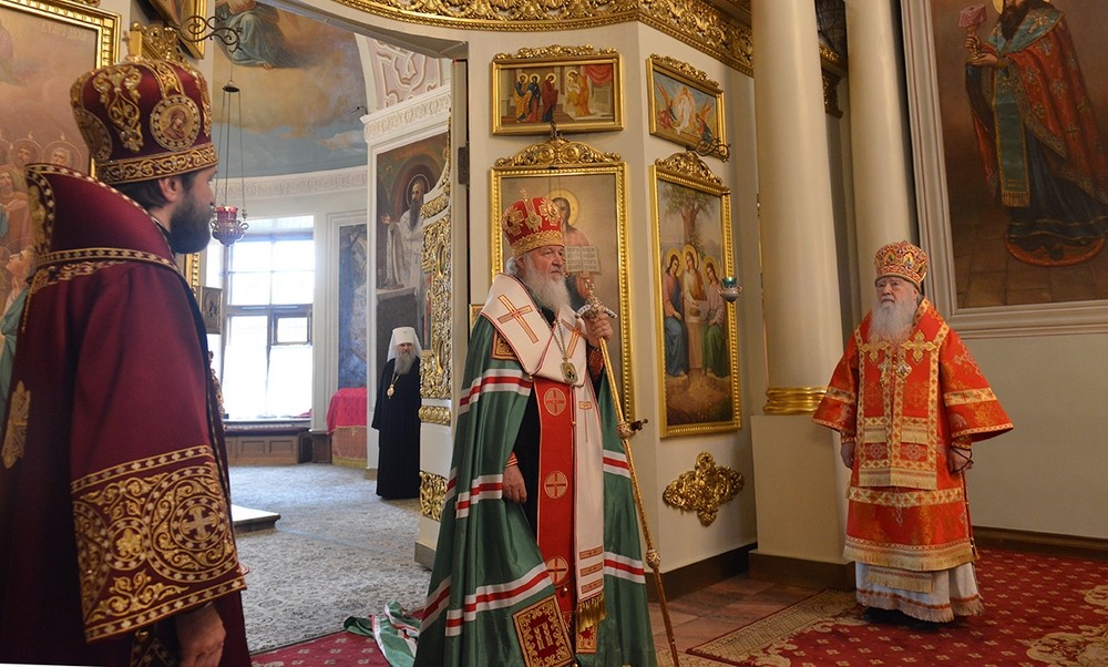 Предстоятелю Русской Православной Церкви сослужили: митрополит Крутицкий и Коломенский Ювеналий; председатель Отдела внешних церковных связей Московского Патриархата митрополит Волоколамский Илларион; председатель Издательского Совета Русской Православной Церкви митрополит Калужский и Боровский Климент; представитель Патриарха Александрийского при Патриархе Московском и всея Руси митрополит Киринский Афанасий; митрополит Феодосийский и Керченский Платон; митрополит Омский и Таврический Владимир; митрополит Пермский и Кунгурский Мефодий; митрополит Истринский Арсений; митрополит Казанский и Татарстанский Феофан; председатель Синодального комитета по взаимодействию с казачеством митрополит Ставропольский и Невинномысский Кирилл; руководитель Управления Московской Патриархии по зарубежным учреждениям епископ Богородский Антоний.