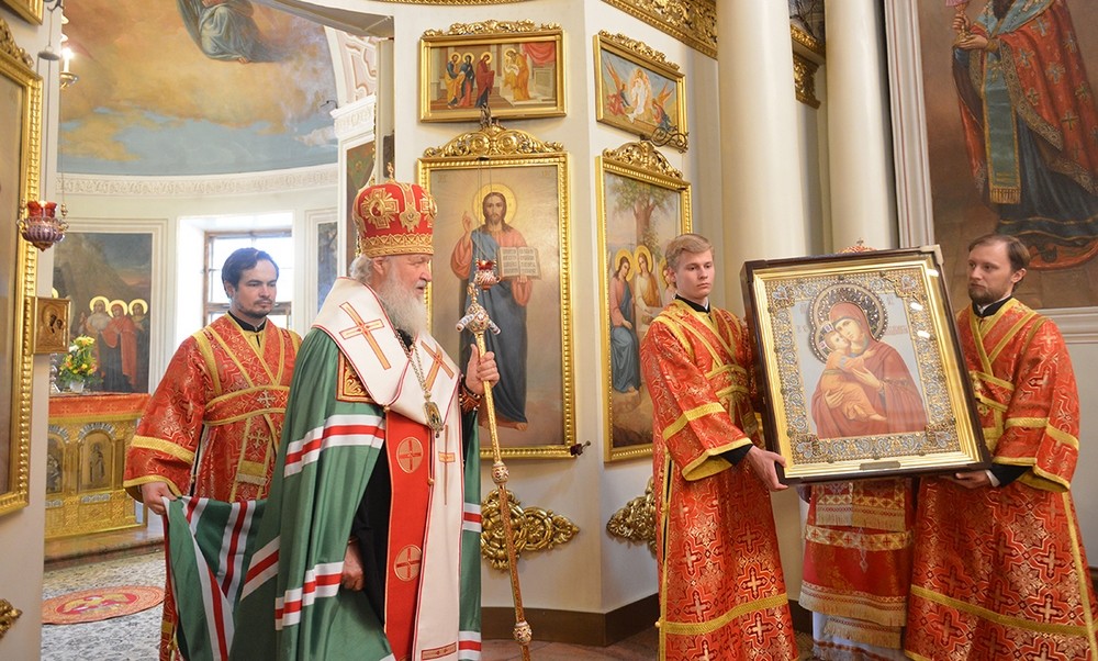 На память о торжестве Святейший Патриарх Московский и всея Руси Кирилл передал Отделу внешних церковных связей Московского Патриархата Владимирскую икону Божией Матери.