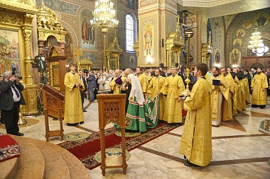 После сугубой ектении Святейший Патриарх Кирилл вознес молитву о мире на Украине.