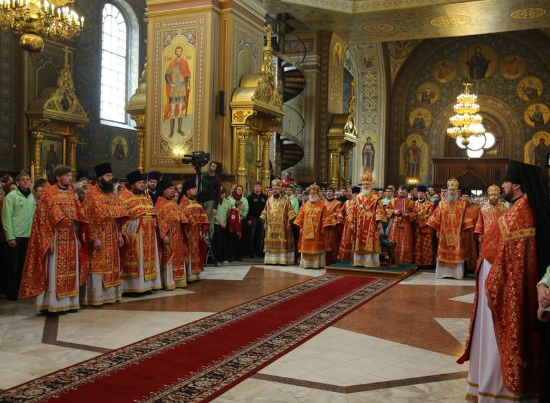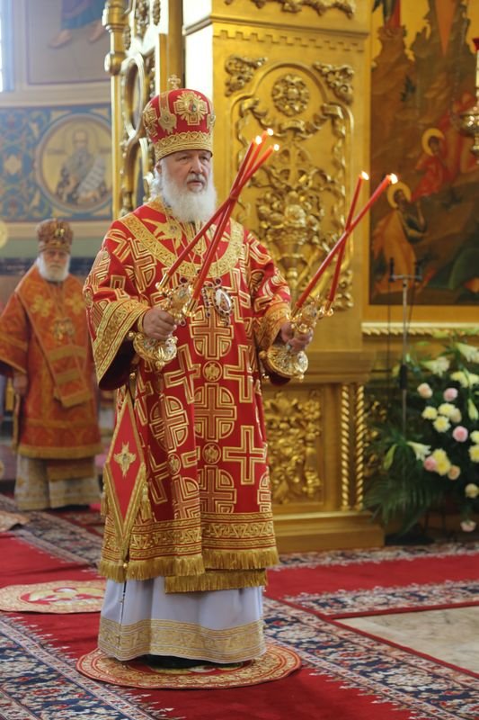 22 мая 2016 года, в Неделю 4-ю по Пасхе, о расслабленном, праздник перенесения мощей святителя и чудотворца Николая из Мир Ликийских в Бар, Святейший Патриарх Московский и всея Руси Кирилл в Спасо-Преображенском соборе Николо-Угрешского ставропигиального мужского монастыря возглавил Божественную литургию.