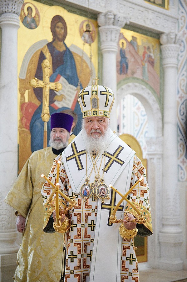 После сугубой ектении Предстоятель Русской Православной Церкви вознес молитву о мире на Украине.