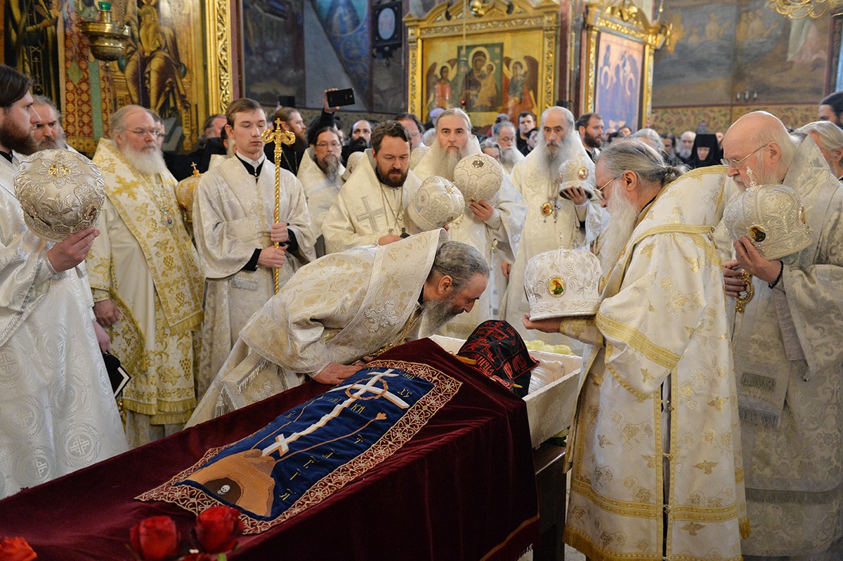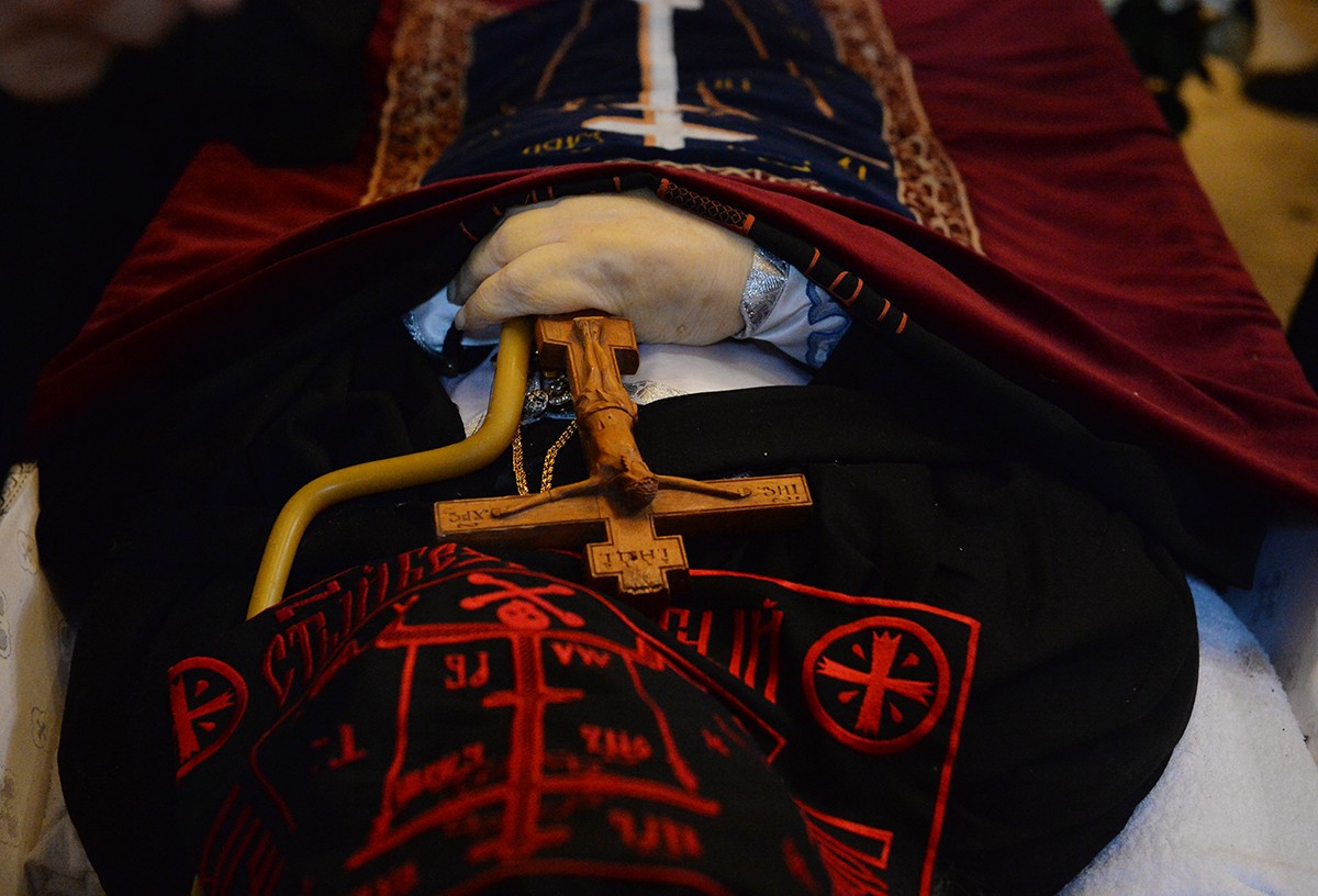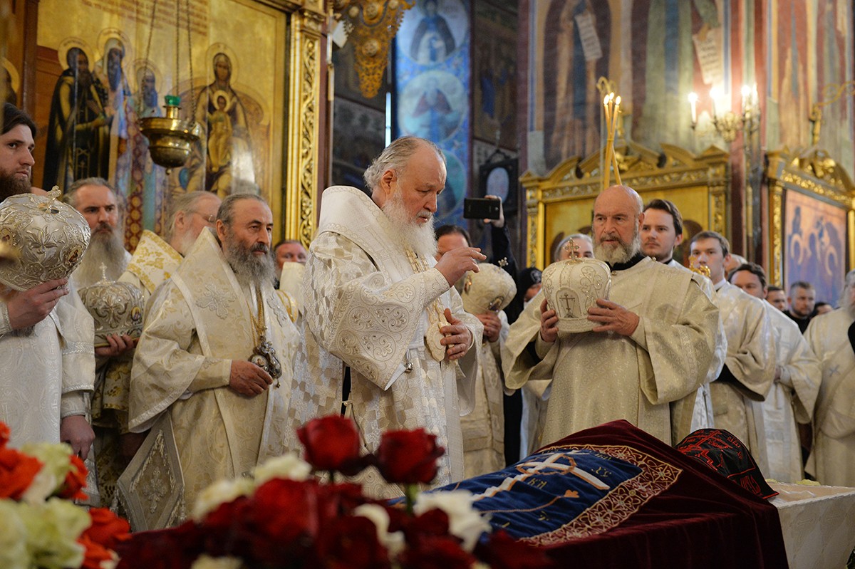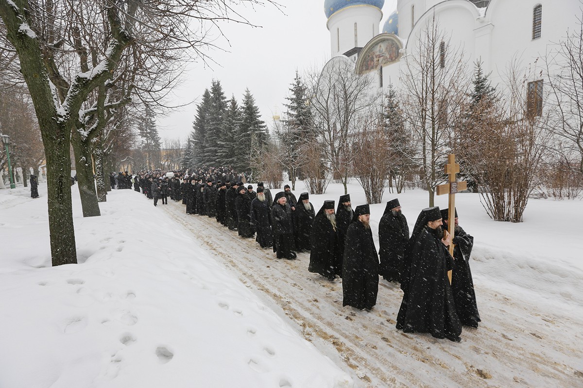 Перед погребением тело отца Кирилла было обнесено вокруг Успенского собора.