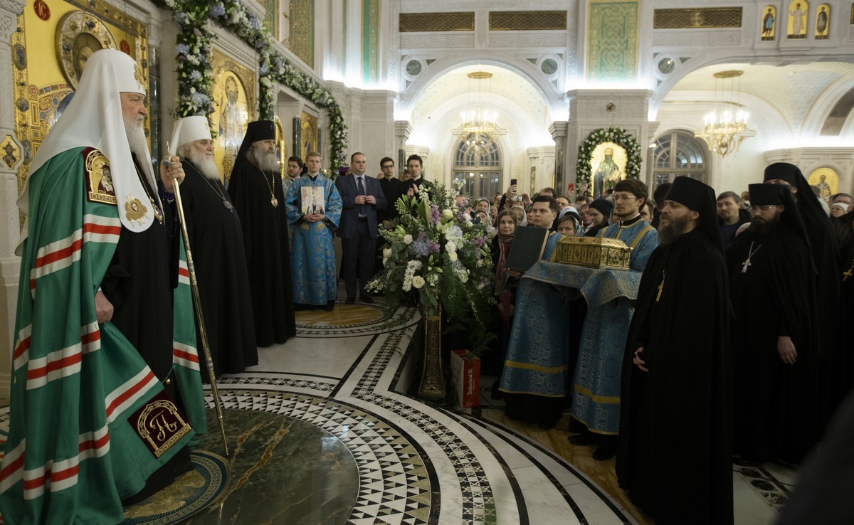 Затем Предстоятель Русской Православной Церкви обратился к участникам богослужения с Первосвятительским словом.
