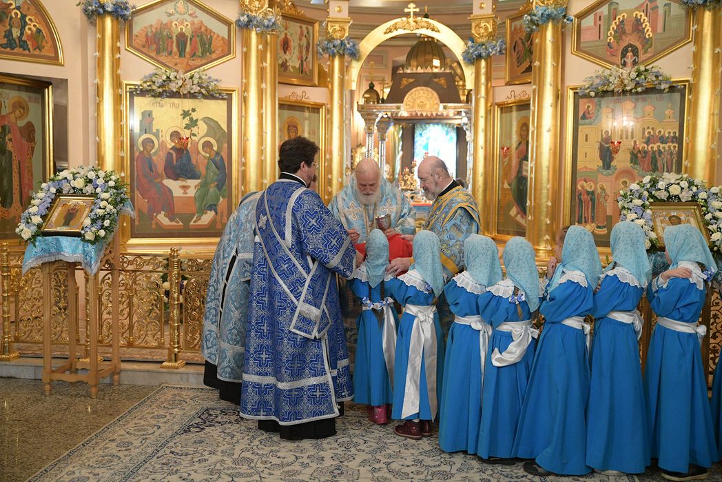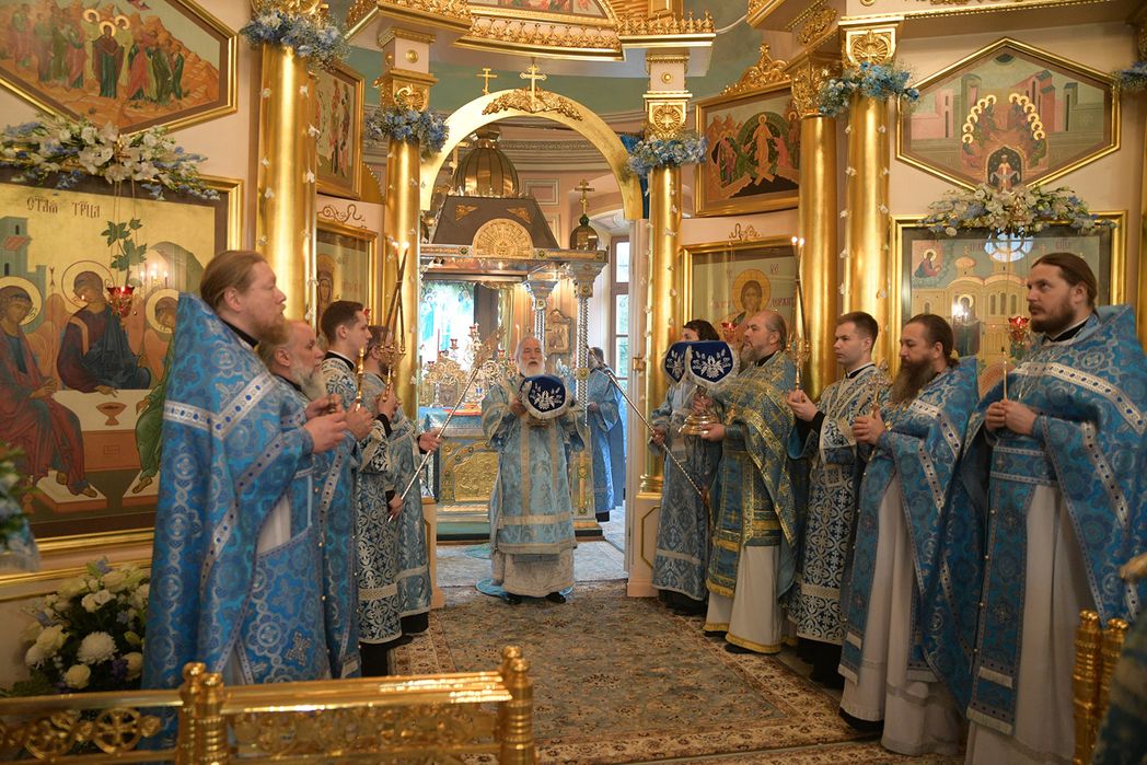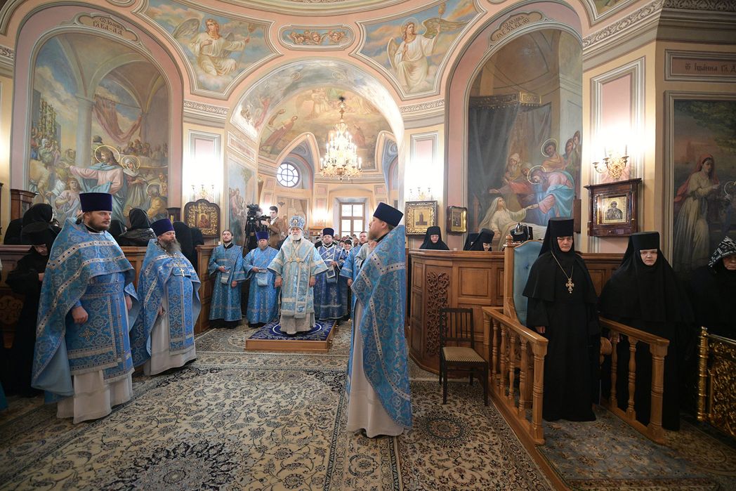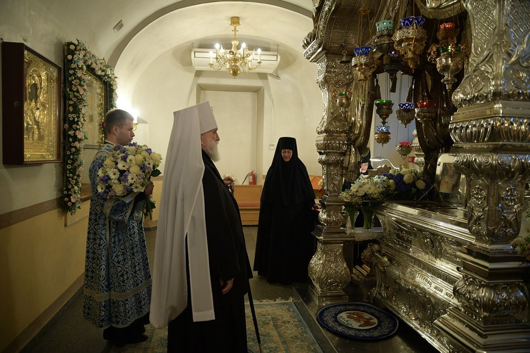Перед началом богослужения митрополит Павел поклонился раке с мощами святой блаженной Матроны Московской, которая установлена на первом этаже Покровского храма.