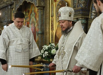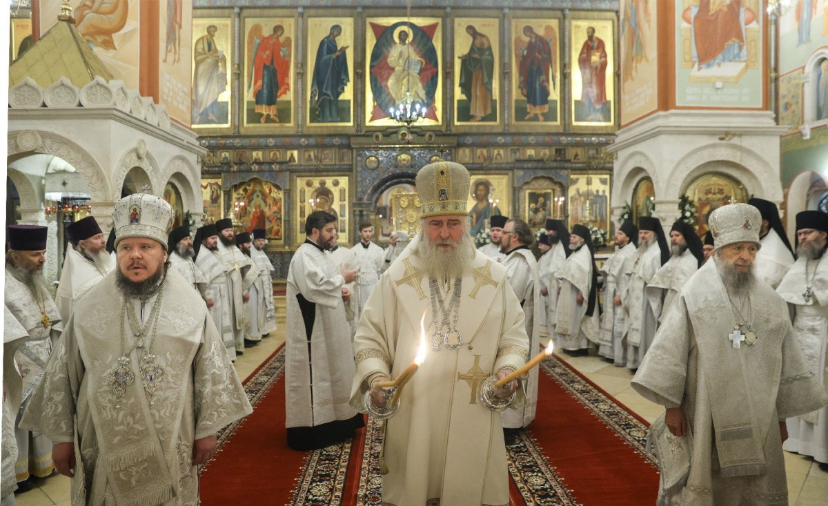 Его Высокопреосвященству сослужили митрополит Саранский и Мордовский Зиновий, епископ Бахчисарайский Каллиник, викарий Симферопольской и Крымской епархии, архимандрит Стефан (Тараканов), заместитель председателя Синодального отдела по монастырям и монашеству, участники монашеского направления Рождественских чтений в священном сане, клирики Зачатьевской обители.