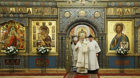 Богослужебные песнопения исполнил хор Зачатьевского монастыря.