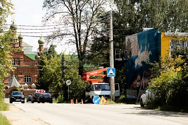 По инициативе Свято-Троицкой Сергиевой лавры на фасаде одного из домов Сергиева Посада появился новый мурал. Арт-объект находится по адресу: г. Сергиев Посад, улица Кирова, дом 5, а его размер составляет 84 кв.м.