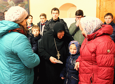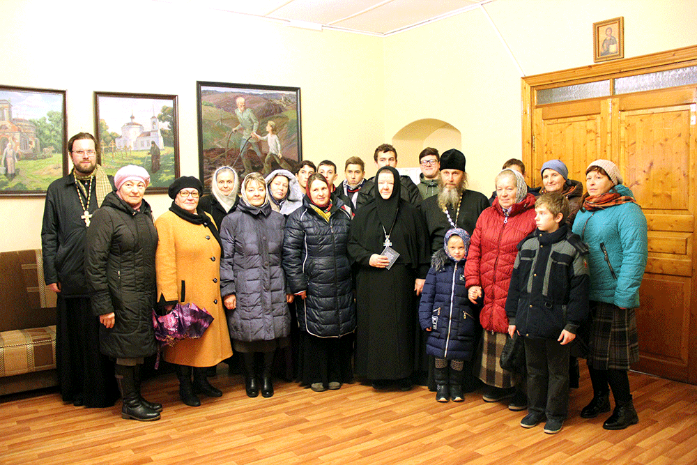 Юные паломники встретились с настоятельницей обители игуменией Олимпиадой (Барановой) и преподнесли в дар изделия, изготовленные руками старшеклассников, и монастырский хлеб.