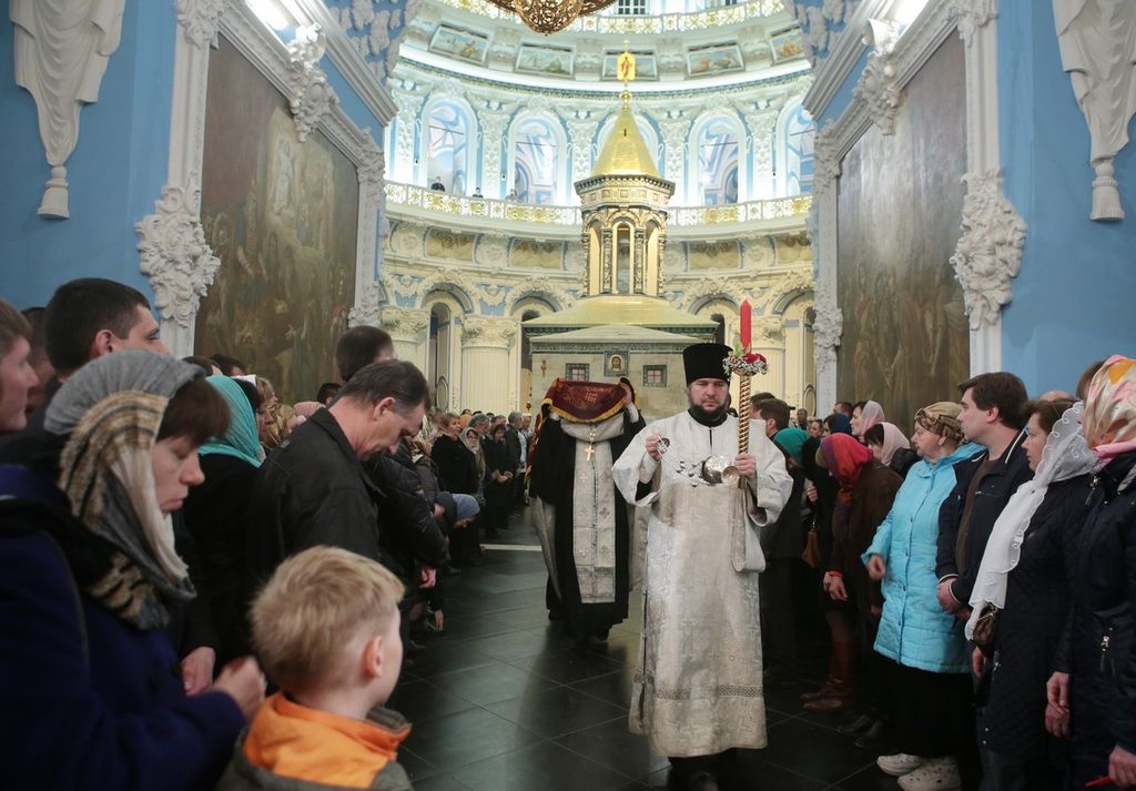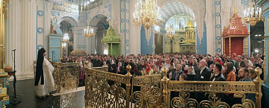 Перед Причастием было зачитано Пасхальное послание Святейшего Патриарха Московского и всея Руси Кирилла архипастырям, пастырям, диаконам, монашествующим и всем верным чадам Русской Православной Церкви.