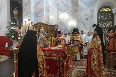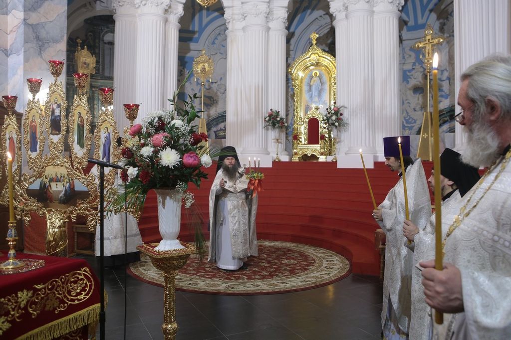 Богослужебные песнопения исполнил монастырский хор под управлением регента Андрея Брилькова.