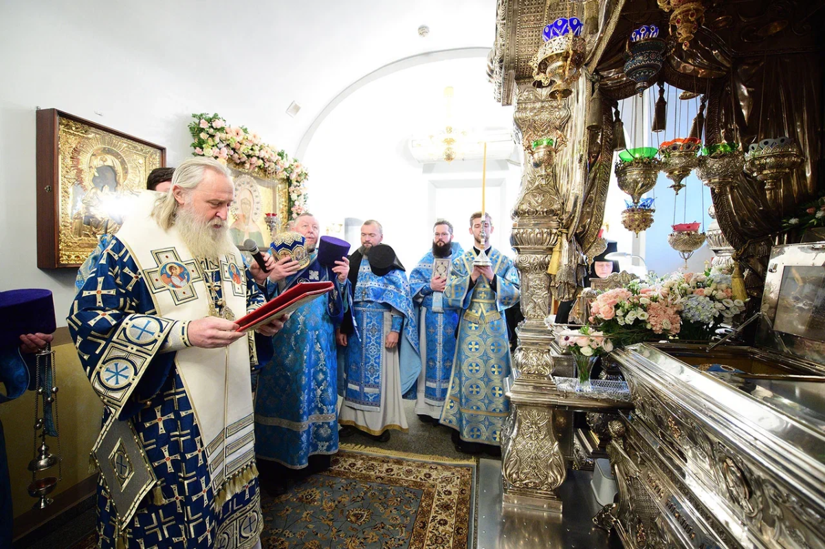 По прибытии в обитель митрополит Феогност поклонился честным мощам блаженной Матроны Московской.