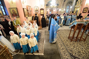 За богослужением молились настоятельница монастыря игумения Феофания (Мискина) с сестрами, воспитанницы монастырского детского приюта, прихожане и паломники.