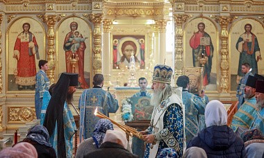 По окончании Литургии был совершен крестный ход в храм Иерусалимской иконы Божией Матери, где владыка Феогност совершил молебен перед чтимой иконой Иерусалимской Божией Матери.