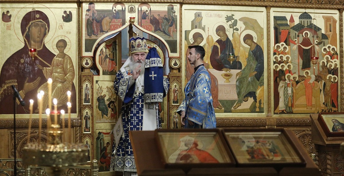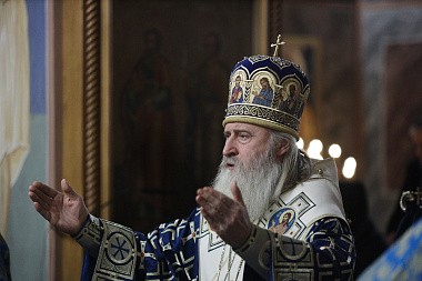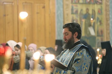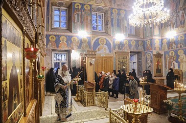 За Божественной литургией Его Высокопреосвященству сослужили клирики обители.