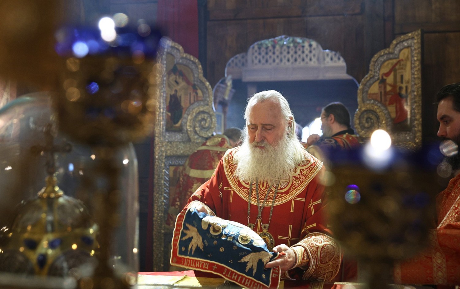 23 мая 2025 года, в пятницу 5-й седмицы по Пасхе, память апостола Симона Зилота, митрополит Каширский Феогност, председатель Синодального отдела по монастырям и монашеству, наместник Донского ставропигиального мужского монастыря возглавил служение Божественной литургии в храме Сретения Владимирской иконы Божией Матери Сретенского ставропигиального мужского монастыря.