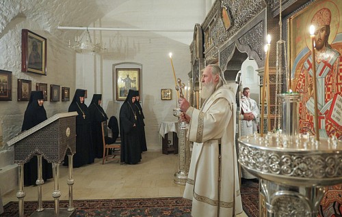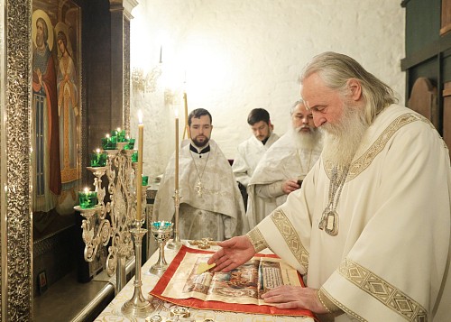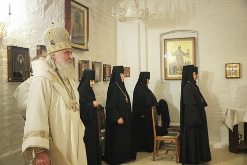 За богослужением молились настоятельница монастыря игумения Викторина (Перминова), заместитель председателя Синодального отдела по монастырям и монашеству, настоятельница Зачатьевского ставропигиального женского монастыря игумения Иулиания (Каледа), настоятельница Николо-Вяжищского ставропигиального женского монастыря игумения Антония (Корнеева), настоятельница Иоанно-Предтеченского ставропигиального женского монастыря игумения Елисавета (Никишкина), заведующая канцелярией Синодального отдела по монастырям и монашеству Г.В. Филиппова, главный редактор портала «Монастырский вестник» Е.П. Орлова, сестры, прихожане и гости монастыря.