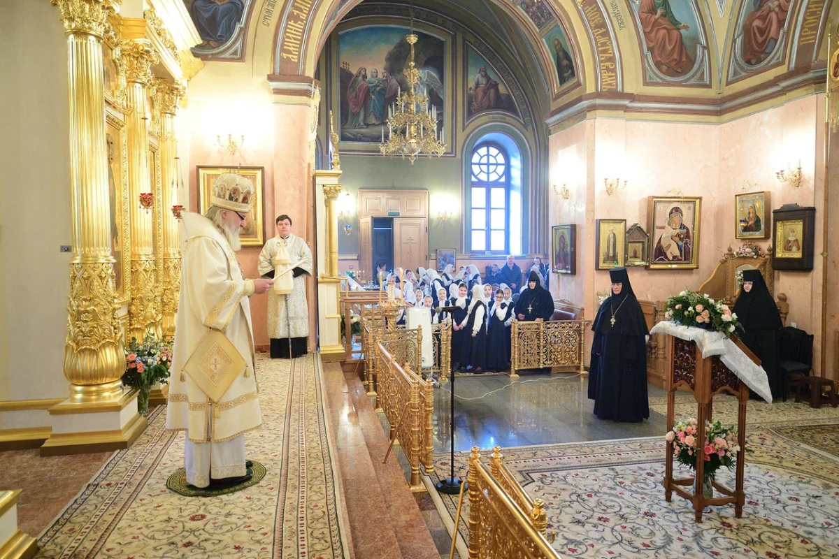 За Литургией молились настоятельница игумения Феофания (Мискина) с сестрами и воспитанницами монастырского приюта, паломники и прихожане обители.
