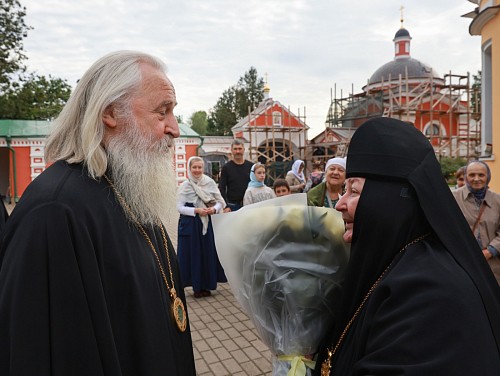 Митрополит Феогност огласил приветственное слово Патриарха Московского и всея Руси Кирилла по случаю тезоименитства настоятельницы Борисоглебского Аносина ставропигиального женского монастыря игумении Марии (Солодовниковой).