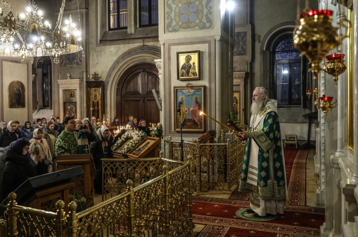 Его Высокопреосвященству сослужили старший священник и духовник монастыря протоиерей Артемий Владимиров и клирики Алексеевской обители.