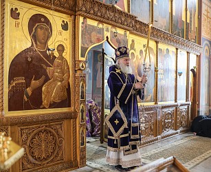 Его Высокопреосвященству сослужили настоятель Покровского скита Свято-Троицкой Сергиевой лавры архимандрит Ефрем (Елфимов), клирики Хотькова монастыря.