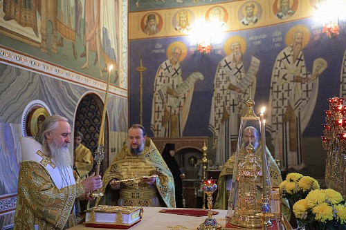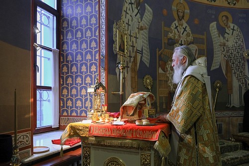 По окончании богослужения митрополит Феогност произнес проповедь о христианском подвиге святителя Афанасия (Сахарова).