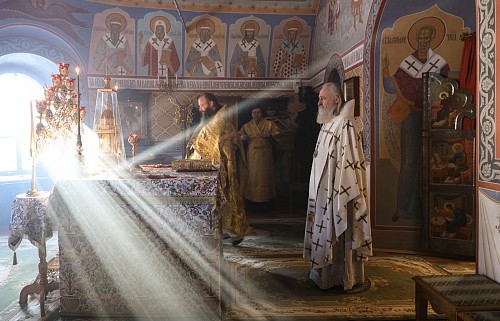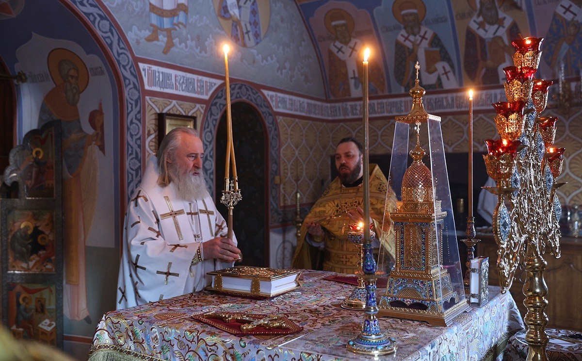 Его Высокопреосвященству сослужили клирики Стефано-Махрищского монастыря.