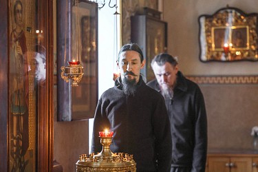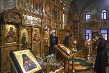 Его Высокопреосвященству сослужили начальник подворья игумен Петр (Романов), братия подворья в священном сане.