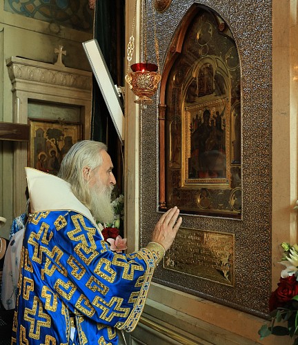 Его Высокопреосвященству сослужило духовенство Алексеевского монастыря: духовник обители протоиерей Артемий Владимиров, протоиерей Сергий Теплов, протоиерей Евгений Каньшин.