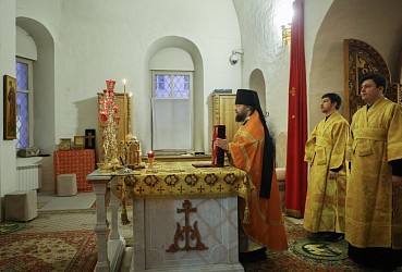 Его Высокопреосвященству сослужили наместник Андреевского ставропигиального монастыря игумен Дионисий (Шлёнов), братия обители в священном сане.