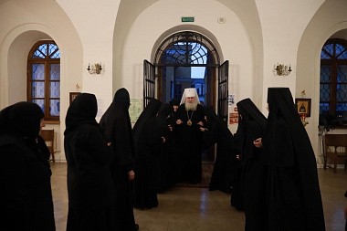 Его Высокопреосвященству сослужило монастырское духовенство.