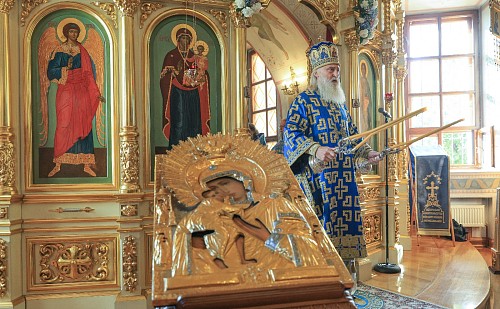 Его Высокопреосвященству сослужило монастырское духовенство.
