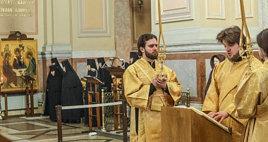 Его Высокопреосвященству сослужили начальник Московского подворья Спасо-Преображенского Валаамского ставропигиального мужского монастыря игумен Петр (Романов), клирики Иоанно-Предтеченского монастыря.