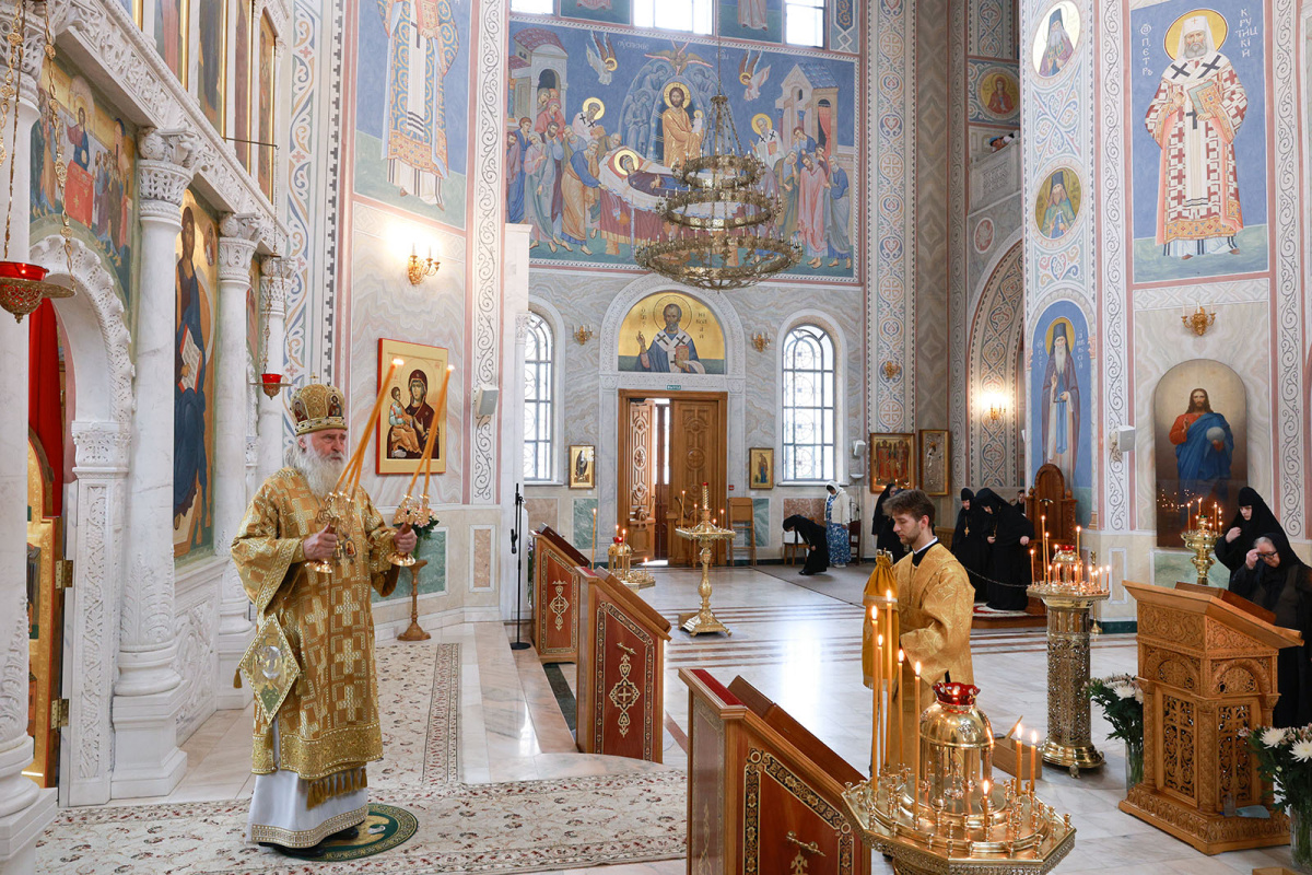 Его Высокопреосвященству сослужили секретарь Патриарха Московского и всея Руси по г. Москве протопресвитер Владимир Диваков, духовенство обители.