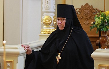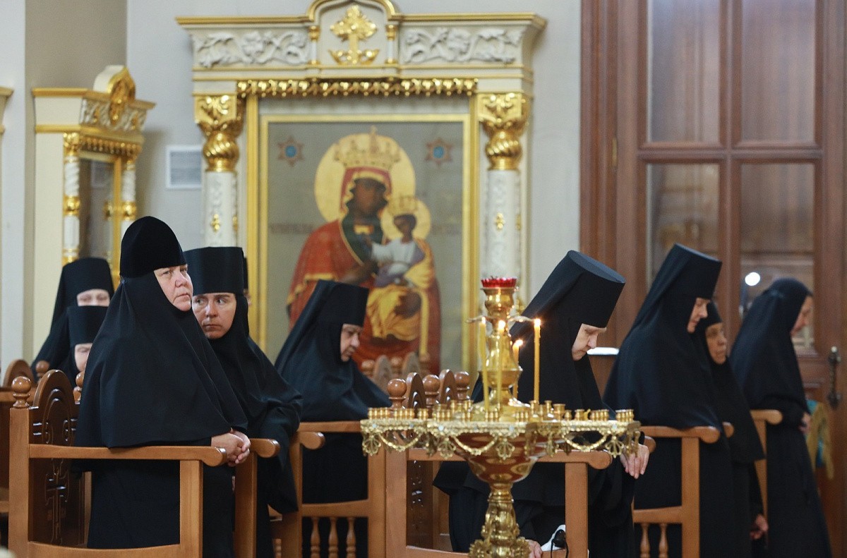 Затем митрополит Феогност зачитал поздравление Святейшего Патриарха Московского и всея Руси Кирилла и поздравил матушку игумению с сестрами со знаменательными датами.