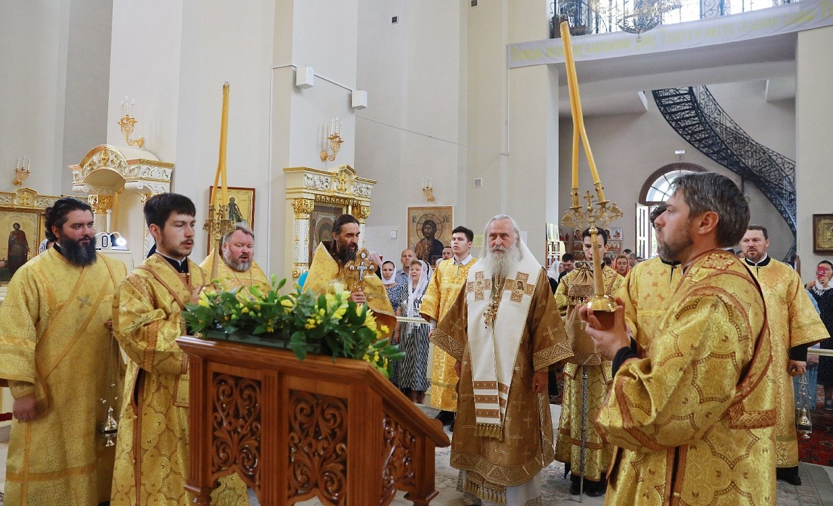 В Вознесенском соборе Его Высокопреосвященству сослужили клирики обители.