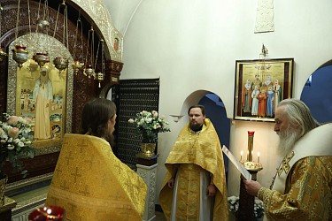 В Покровском соборе обители Его Высокопреосвященству сослужили клирики монастыря.