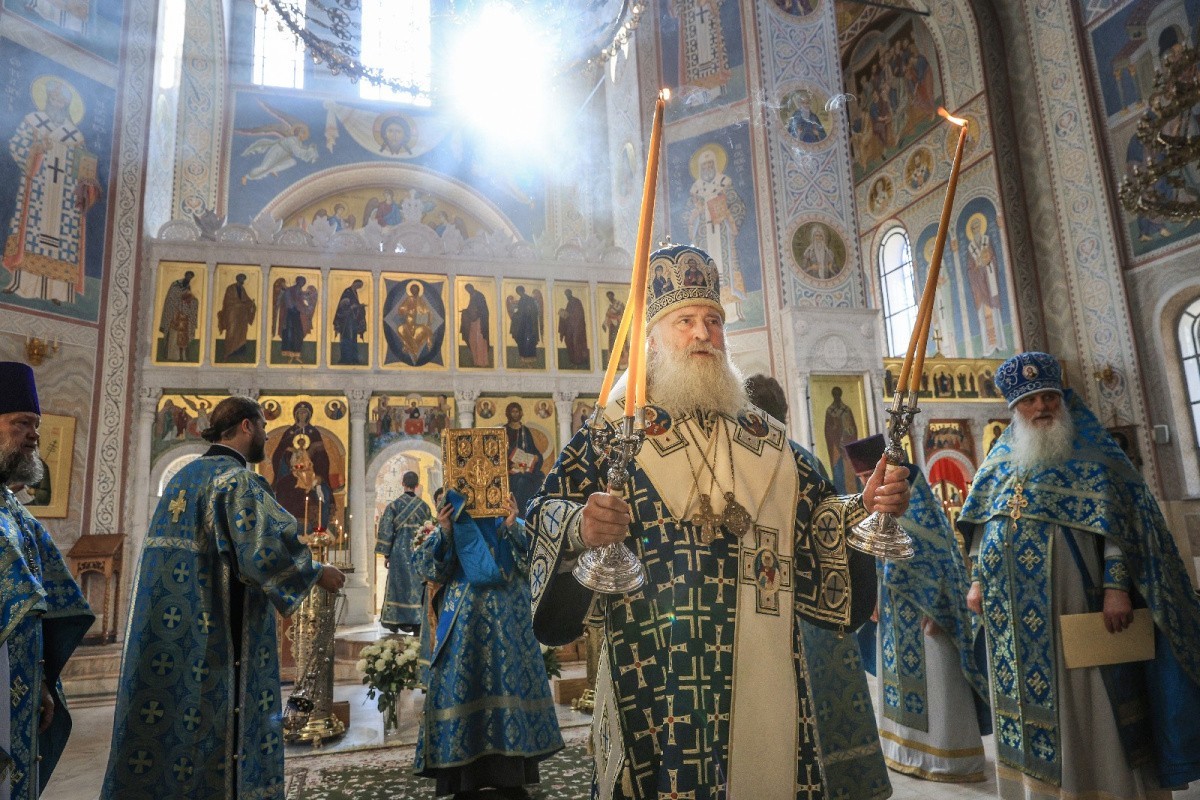 Его Высокопреосвященству сослужило духовенство обители.