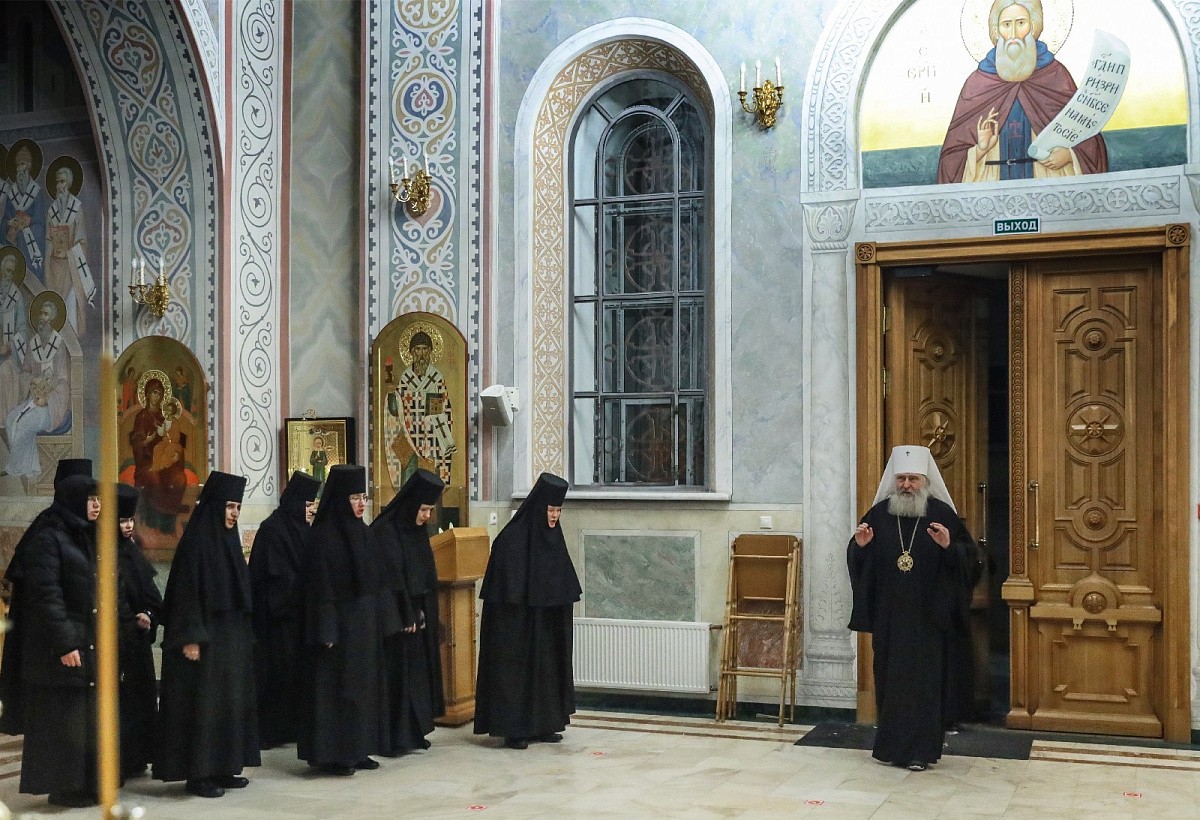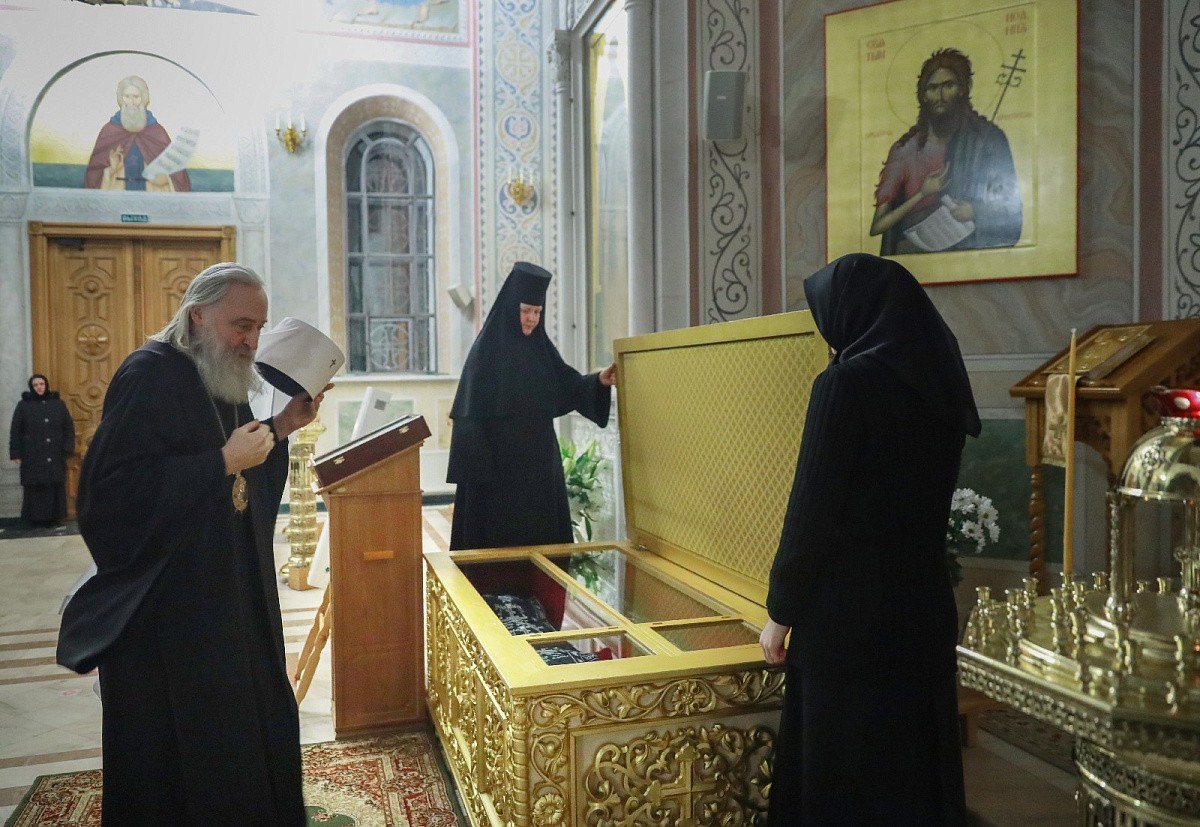 5 января 2022 года, в день памяти мучеников Критских, председатель Синодального отдела по монастырям и монашеству, наместник Донского ставропигиального мужского монастыря митрополит Каширский Феогност совершил Божественную литургию в Покровском Хотькове ставропигиальном женском монастыре.