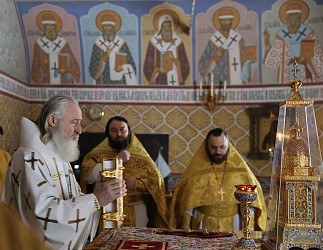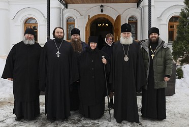Его Высокопреосвященству сослужили заместитель председателя Синодального отдела по монастырям и монашеству архимандрит Стефан (Тараканов), клирик храма во имя иконы «Всех Скорбящих Радосте» г. Москвы игумен Филарет (Тамбовский), клирики Стефано-Махрищской обители и подворья монастыря.
