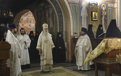 Богослужебные песнопения исполнил сестринский хор и мужской хор храма Живоначальной Троицы в Останкине г. Москвы.