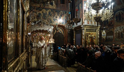 Богослужебные песнопения исполнил хор Троицкого собора Лавры.