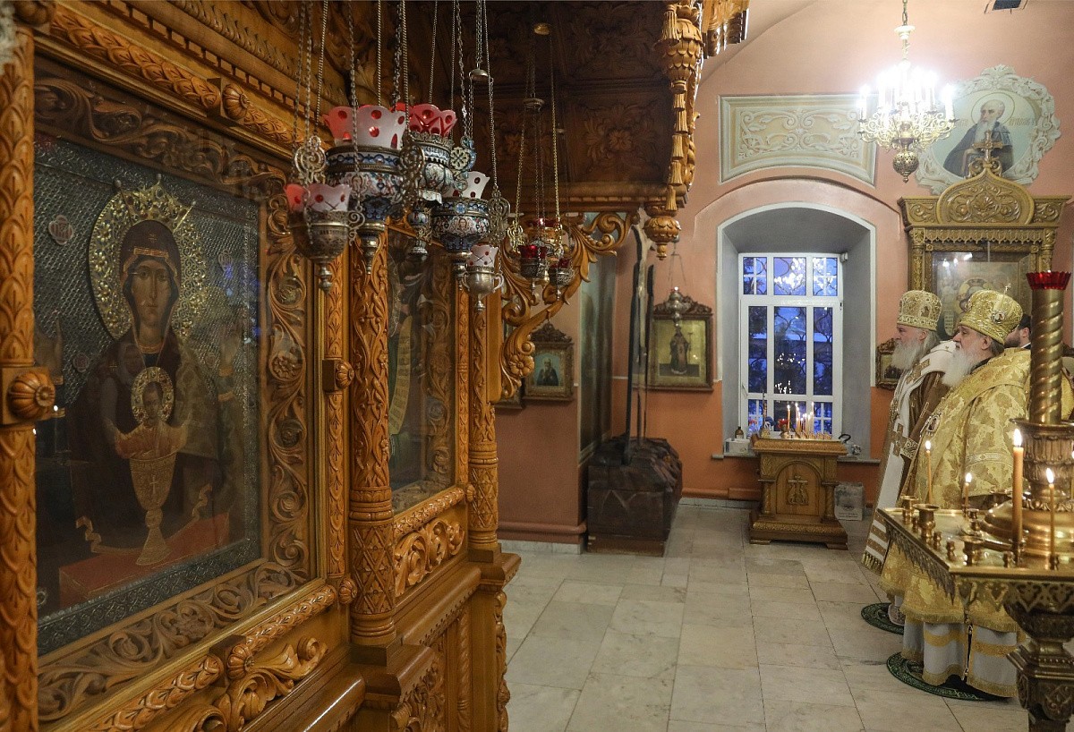 26 ноября 2022 года, в день памяти святителя Иоанна Златоуста, председатель Синодального отдела по монастырям и монашеству, наместник Донского ставропигиального мужского монастыря митрополит Каширский Феогност совершил Литургию в храме Покрова Пресвятой Богородицы Высоцкого ставропигиального мужского монастыря города Серпухова Московской области.