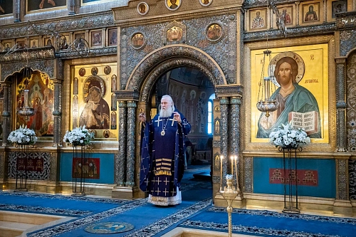 Его Высокопреосвященству сослужили монастырское духовенство и клирики Москвы.