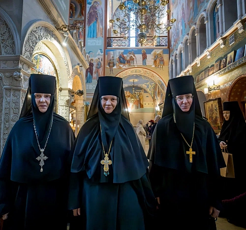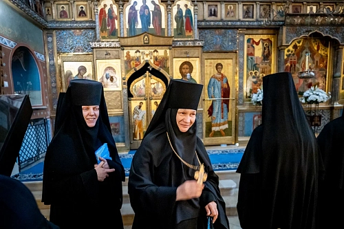 За Литургией молились заместитель председателя Синодального отдела по монастырям и монашеству, настоятельница Зачатьевского ставропигиального женского монастыря игумения Иулиания (Каледа), настоятельница Богородице-Рождественского ставропигиального женского монастыря игумения Викторина (Перминова), настоятельница Никитского женского монастыря в деревне Бывалино Московской области игумения Капитолина (Филиппенко), сестры и прихожане обители.