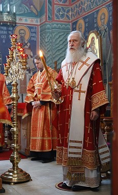 Его Высокопреосвященству сослужило монастырское духовенство.