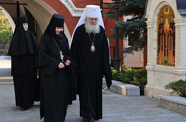 За Литургией молились заместитель председателя Синодального отдела по монастырям и монашеству, настоятельница Зачатьевского монастыря игумения Иулиания (Каледа) с сестрами, настоятельница Никитского женского монастыря д. Бывалино Московской области игумения Капитолина (Филиппенко), прихожане и гости обители.
