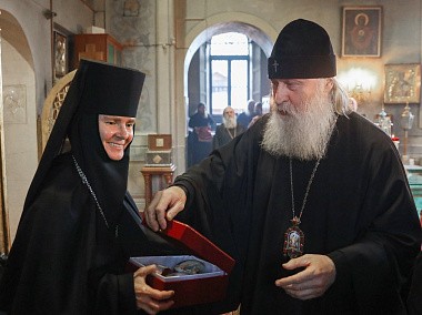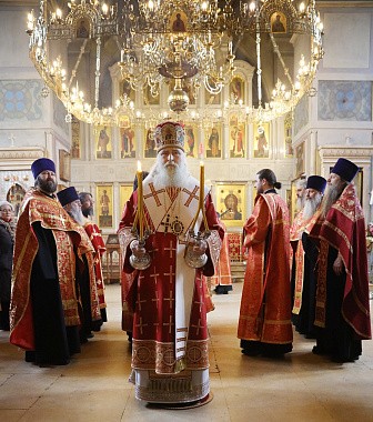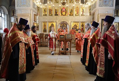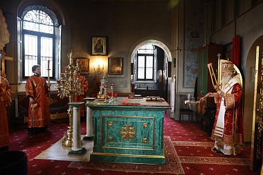 Его Высокопреосвященству сослужили старший священник и духовник обители протоиерей Артемий Владимиров, клирики монастыря.