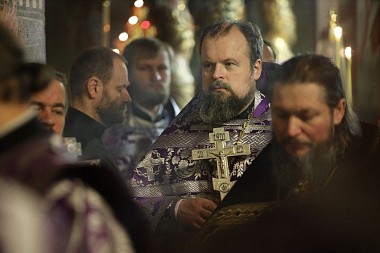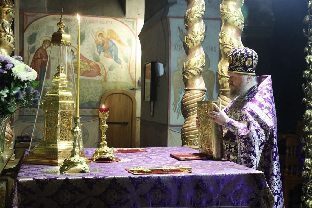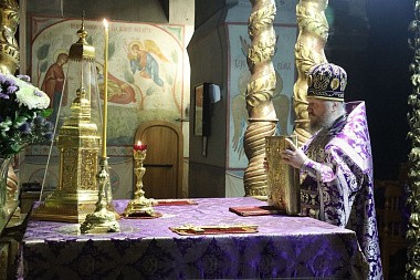 Накануне вечером в монастыре было совершено всенощное бдение с чином выноса Честного и Животворящего Креста Господня.