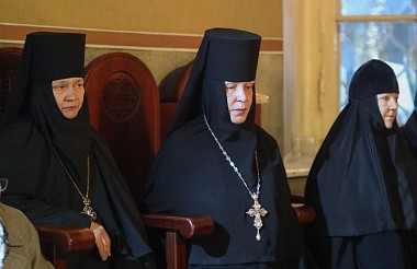 За Литургией молились заместитель председателя Синодального отдела по монастырям и монашеству, настоятельница Зачатьевского ставропигиального женского монастыря игумения Иулиания (Каледа), настоятельница Богородице-Рождественского ставропигиального женского монастыря игумения Викторина (Перминова), прихожане и гости монастыря.